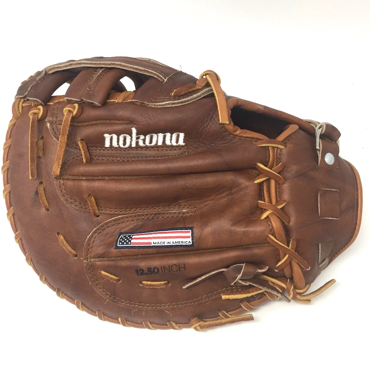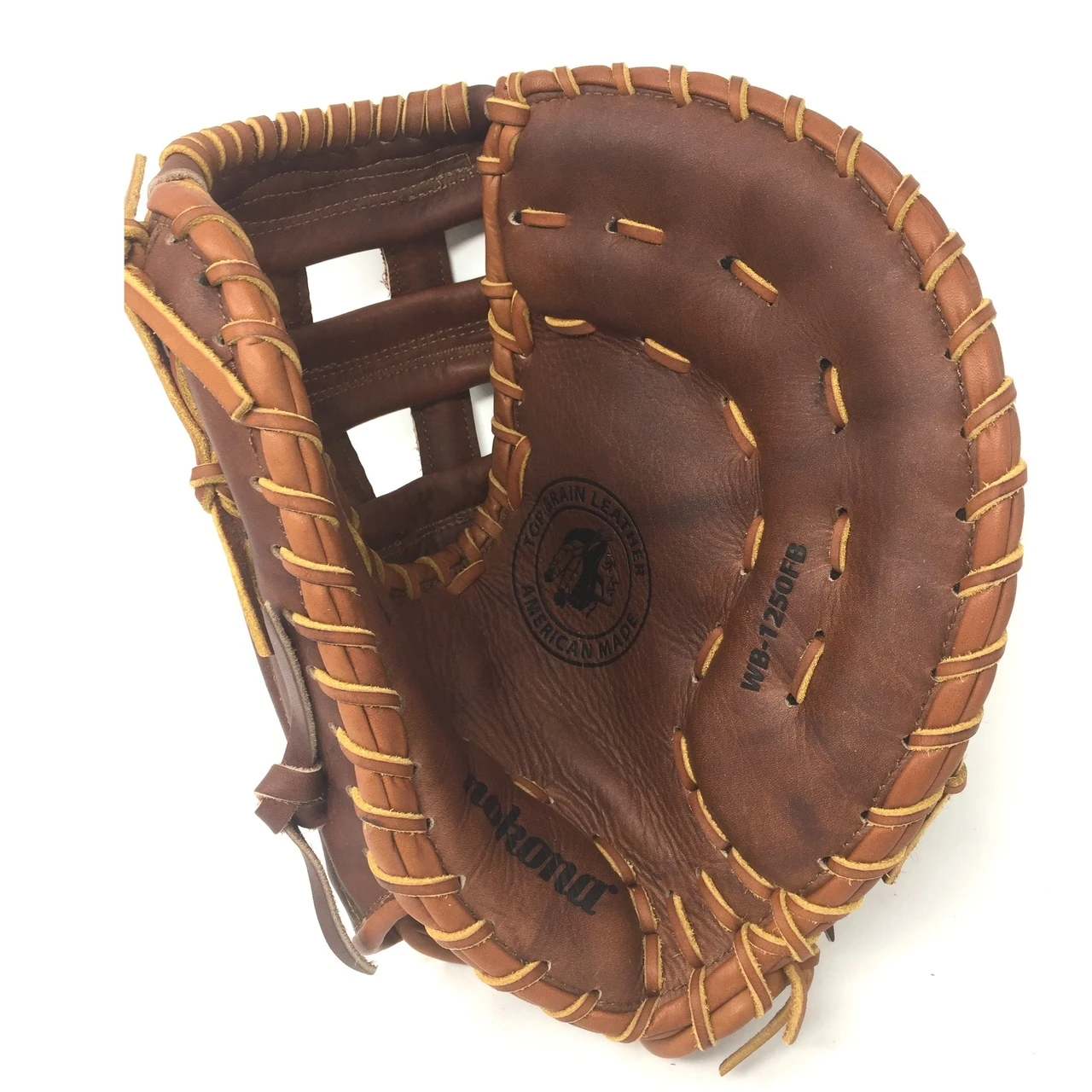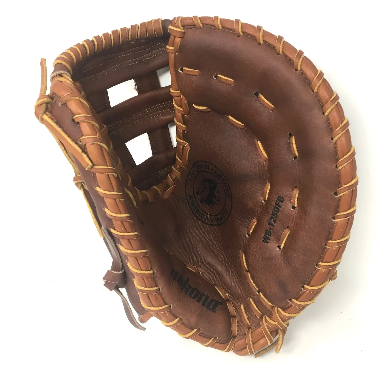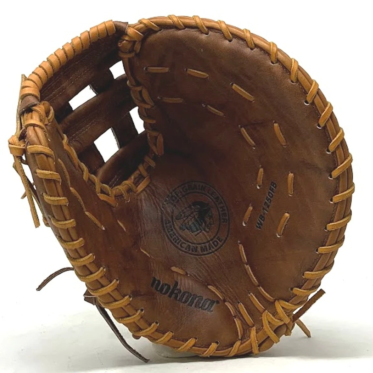 Nokona WB-1250H 12.5 H Web Walnut Baseball First Base Mitt (Right Handed Throw) : 12.5″ Pattern Walnut Leather. Once this glove is worked in, this glove is soft and supple, yet remains sturdy. a true classic Nokona.